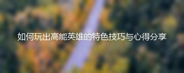 以上就是为大家带来的《如何玩出高能英雄的特色技巧与心得分享》。通过充分了解英雄技能和特点、练习英雄的灵活操作、与队友合作默契、保持冷静思考和正确判断、不断学习和调整策略,您将能玩出更出色的高能英雄表现!快来尝试吧!