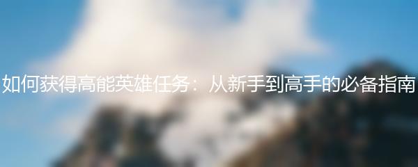 您是否想要成为一个高能英雄?是否寻求一种方式来获取高能英雄任务?本文将为您提供从新手到高手的必备指南,教您如何获得高能英雄任务以及成为英雄的技巧。