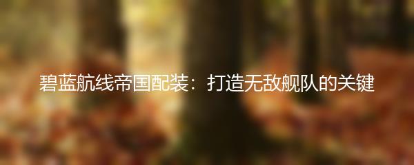 碧蓝航线帝国配装:打造无敌舰队的关键