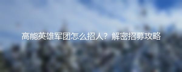 - 线上招募平台:高能英雄军团在互联网上设立了专门的招募网站,人们可以通过网站了解招募信息,并进行在线申请。