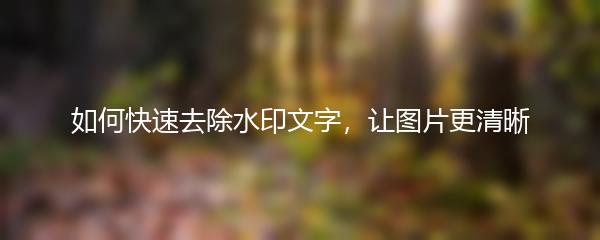 以上就是如何快速去除水印文字的方法。通过使用图片编辑软件中的修复工具,可以轻松去除照片中的水印文字。去除水印文字后,照片的视觉效果将更加清晰,质量也将得到提升。