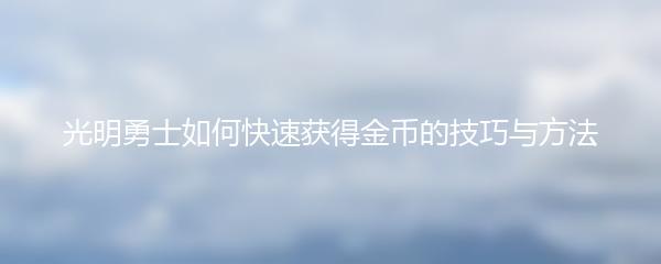 光明勇士如何快速获得金币的技巧与方法