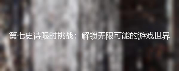 以上就是为大家带来的《第七史诗限时挑战:解锁无限可能的游戏世界》。无论你是一名游戏爱好者还是想要挑战自我,这个限时挑战都将为你带来难忘的游戏体验。快来参与这场挑战,探索一个全新的游戏世界吧!