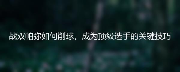 通过学习战双帕弥的削球技巧,我们可以看到她之所以能够成为顶级选手,关键在于她对削球技术的精通和不断的训练。削球作为一项重要的技能,在战双帕弥的努力下,为她赢得了荣誉并且成为她竞技生涯中的亮点。