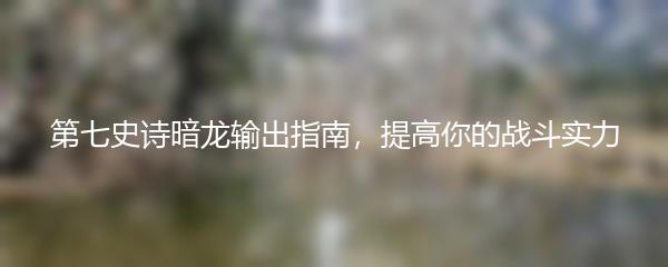 第七史诗暗龙输出指南,提高你的战斗实力