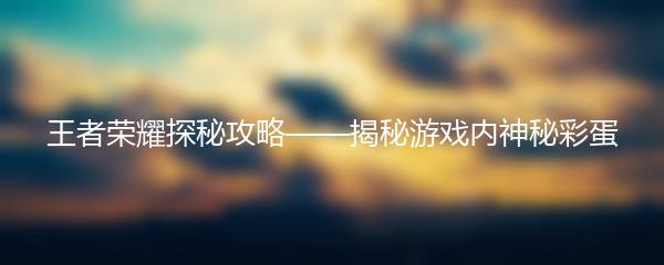 王者荣耀探秘攻略——揭秘游戏内神秘彩蛋。王者荣耀是一款备受瞩目的手机MOBA游戏,拥有庞大的玩家群体。除了精彩的战斗和策略,游戏内还隐藏了很多神秘的彩蛋,下面将详细介绍这些神秘彩蛋,让你玩的更加有趣。