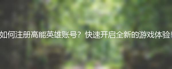 如何注册高能英雄账号?快速开启全新的游戏体验!