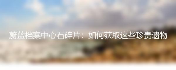 首先,让我们了解一下蔚蓝档案中心石碎片的背景。这些石碎片是由蔚蓝档案中心收集和保护的,这个档案中心致力于保护和研究人类历史和文化遗产。石碎片存储了许多珍贵的信息,并且被认为是研究古代文明的重要资源。