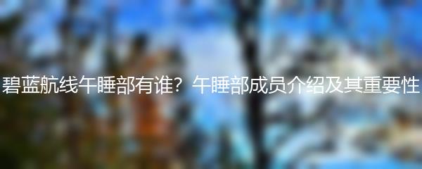 碧蓝航线是一款备受玩家喜爱的游戏,其中的午睡部是一个非常重要的组织。那么,碧蓝航线午睡部有谁呢?本文将为大家介绍午睡部的成员及其重要性。
