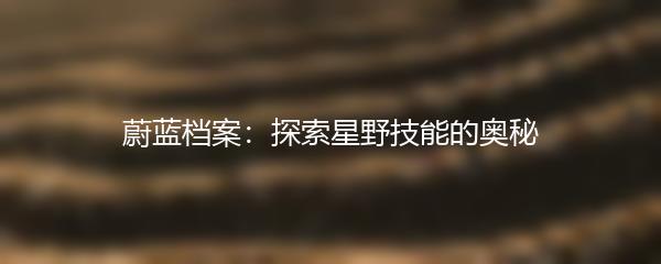 蔚蓝档案是一部探索神秘现象的纪录片,其中引人注目的主题之一就是星野技能。在这个纪录片中,我们将揭开星野技能背后的奥秘,并一同探索它的起源和影响。通过深入研究和解析,我们将展示星野技能的独特之处以及它对人类的意义。