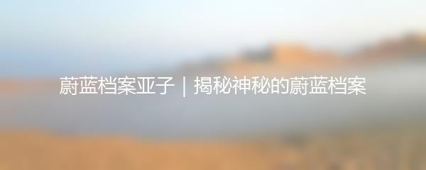 蔚蓝档案亚子|揭秘神秘的蔚蓝档案