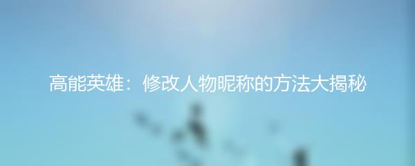 高能英雄:修改人物昵称的方法大揭秘