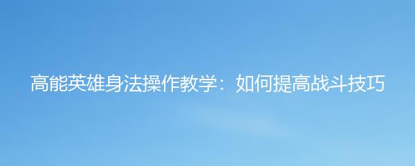 伴随着电竞行业的快速发展,高能英雄身法操作成为了电竞选手们提高战斗技巧的重要一环。掌握高能英雄身法操作,不仅可以帮助选手在战场上脱离敌人的攻击,还能有效增强生存能力和输出能力。本文将针对高能英雄身法操作进行详细讲解,帮助玩家们在游戏中提升实力。