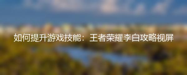 如何提升游戏技能:王者荣耀李白攻略视屏