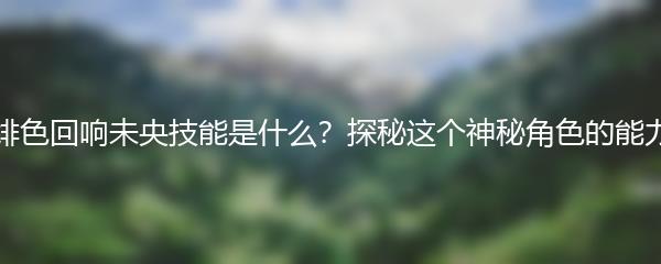 绯色回响未央技能是什么?探秘这个神秘角色的能力