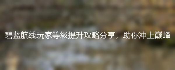 碧蓝航线玩家等级提升攻略分享,助你冲上巅峰