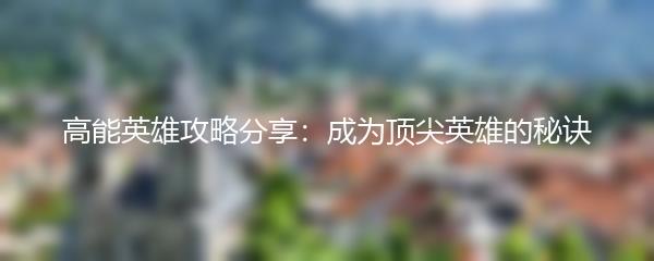 高能英雄攻略分享:成为顶尖英雄的秘诀