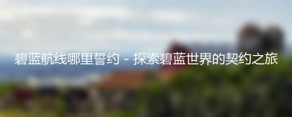 碧蓝航线哪里誓约 - 探索碧蓝世界的契约之旅