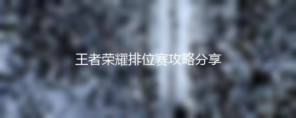 王者荣耀排位赛攻略分享