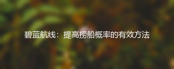 以上就是为大家带来的碧蓝航线提高捞船概率的有效方法。通过优化建造时间、积攒建造资源、运用建造技巧、提高主人等级以及参与活动,相信大家一定能够提高自己捞到心仪船只的几率。祝愿各位玩家好运!