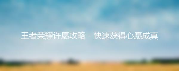 王者荣耀许愿攻略 - 快速获得心愿成真