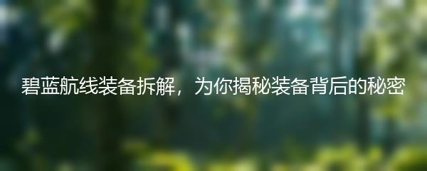碧蓝航线装备拆解,为你揭秘装备背后的秘密