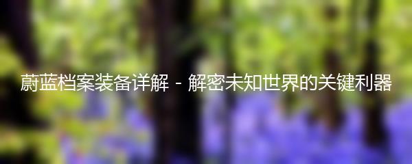 蔚蓝档案装备详解是解密未知世界的关键利器。在这篇文章中,我们将详细介绍蔚蓝档案装备的特点和功能,揭示其在探索未知领域中的重要性。