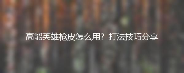 高能英雄枪皮是很多游戏玩家喜爱的一款英雄皮肤。在游戏中,如何充分发挥这款英雄皮肤的优势呢?本文将为大家分享一些关于高能英雄枪皮的打法技巧。