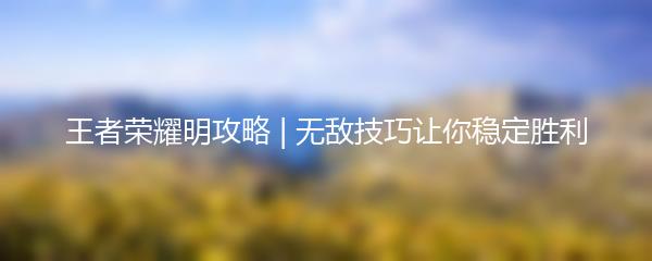 王者荣耀明攻略 | 无敌技巧让你稳定胜利