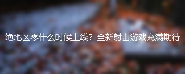 绝地区零,作为一款备受瞩目的射击游戏,受到了广大游戏爱好者的关注。大家都在期待这款游戏的上线时间,那么绝地区零什么时候上线呢?