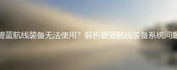 碧蓝航线装备无法使用?解析碧蓝航线装备系统问题