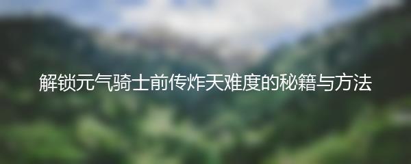 元气骑士前传是一款备受玩家喜爱的动作冒险游戏。近日,开发商推出了全新的炸天难度,为游戏增添了更多挑战与乐趣。本文将为大家分享解锁元气骑士前传炸天难度的秘籍与方法,让你轻松应对高难度的挑战。